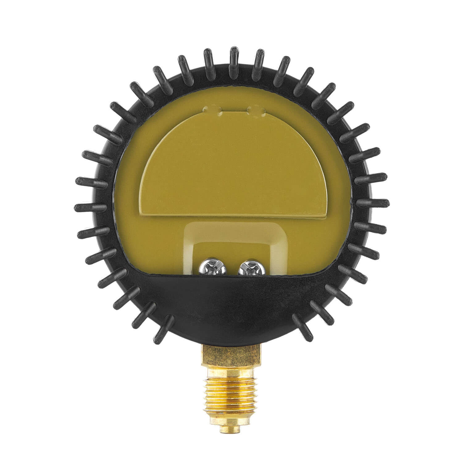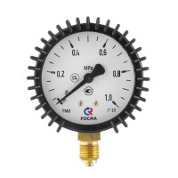 Диаметр корпуса манометра 63 мм. Корпус дополнительно защищен резиновым кожухом для сохранности манометра от механических повреждений.