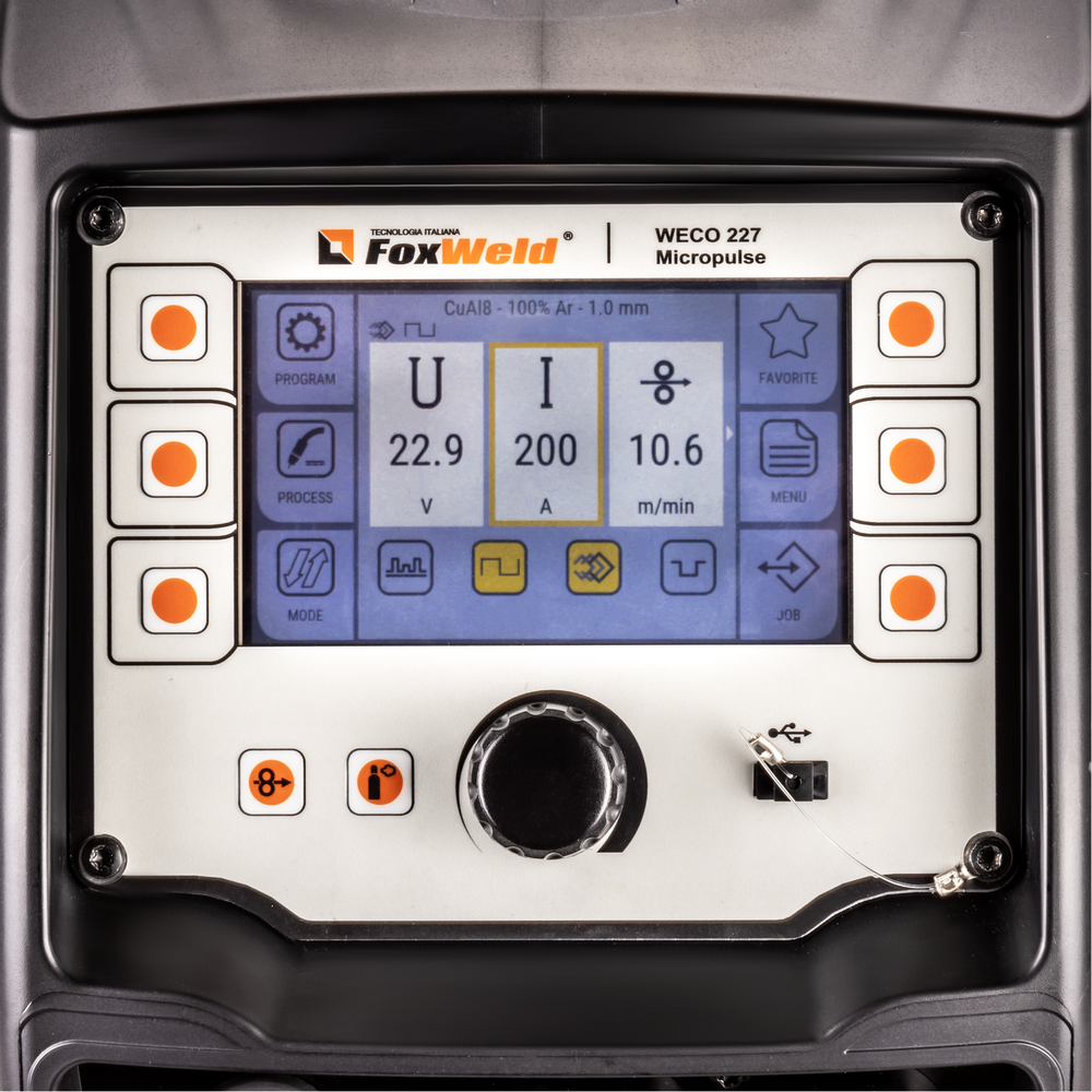 Сварочный полуавтомат FOXWELD WECO MIG 227 DP DIGITAL разработан для обеспечения сварщиков легким и мобильным сварочным аппаратом, который благодаря уменьшенному объёму можно легко перемещать в любом месте, в том числе при проведении сварки в труднодоступных местах. Перемещение аппарата облегчается благодаря эргономичной верхней ручке. 2-роликовый механизм подачи с оптическим датчиком обеспечивает эффективную и точную подачу проволоки. Наличие мощного микропроцессора позволяет полностью управлять всеми функциями сварки, делая систему пригодной для различных видов сварочного процесса. С помощью USB-разъёма можно обновить программное обеспечение аппарата, записать на USB-накопитель сохранённые режимы сварки и перенести их с одного аппарата на другой. Аппараты FoxWeld серии WECO собрали в себе опыт разработки и эксплуатации профессионального сварочного оборудования, начиная с 1998 г. Все аппараты линейки WECO разрабатываются и производятся в Италии на заводе Corso Noblesville. Высокое качество производства и надежность наших аппаратов позволяют обеспечивать расширенную гарантию на всю линейку FoxWeld серии WECO.